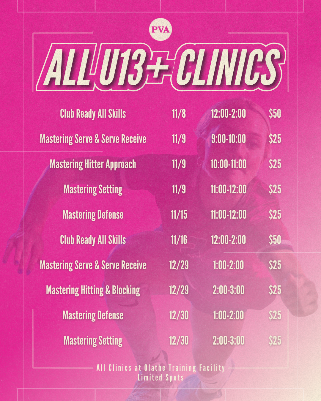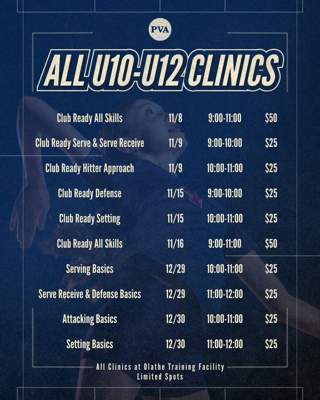 Performance Volleyball Academy (PVA) will provide a competitive environment where our athletes not only grow as volleyball players but are empowered as young individuals as well.